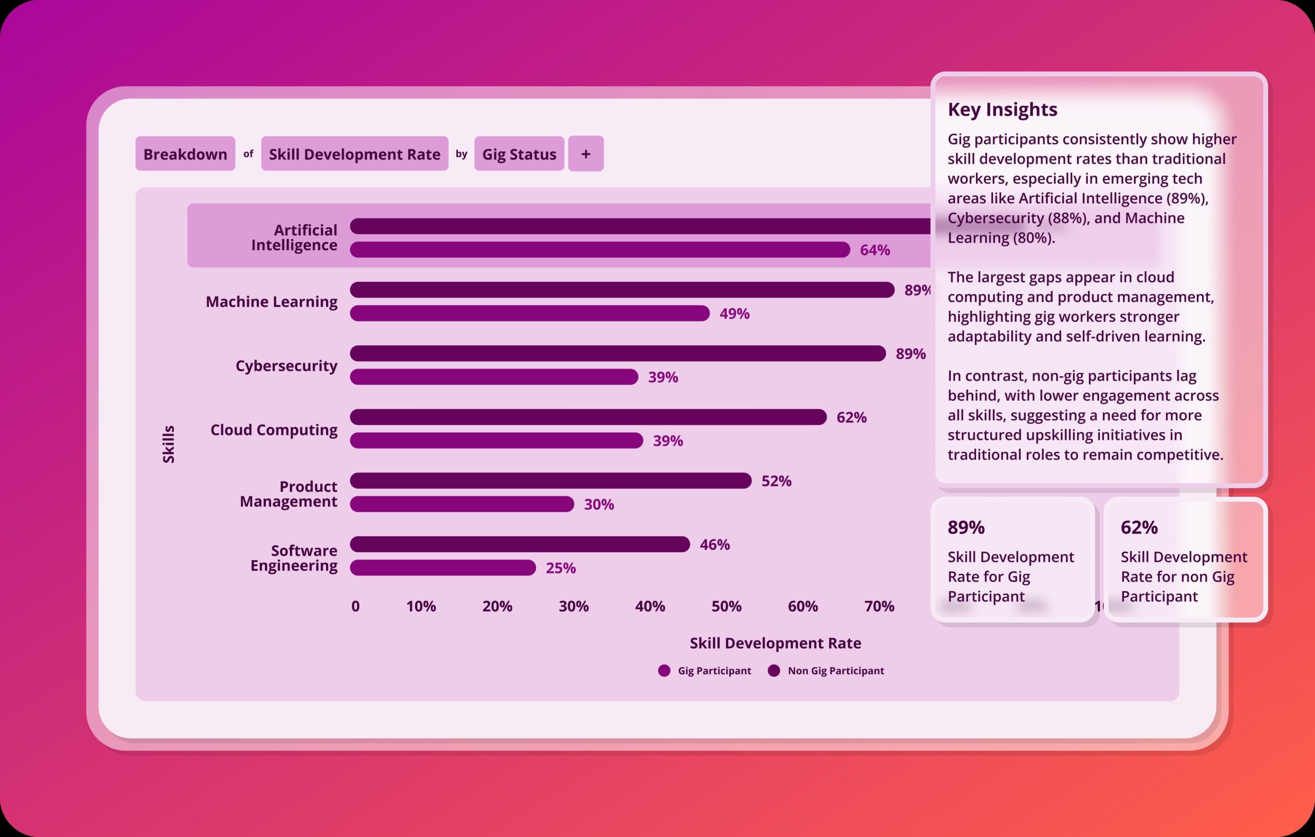 Track where skills are growing and spotlight emerging gaps.