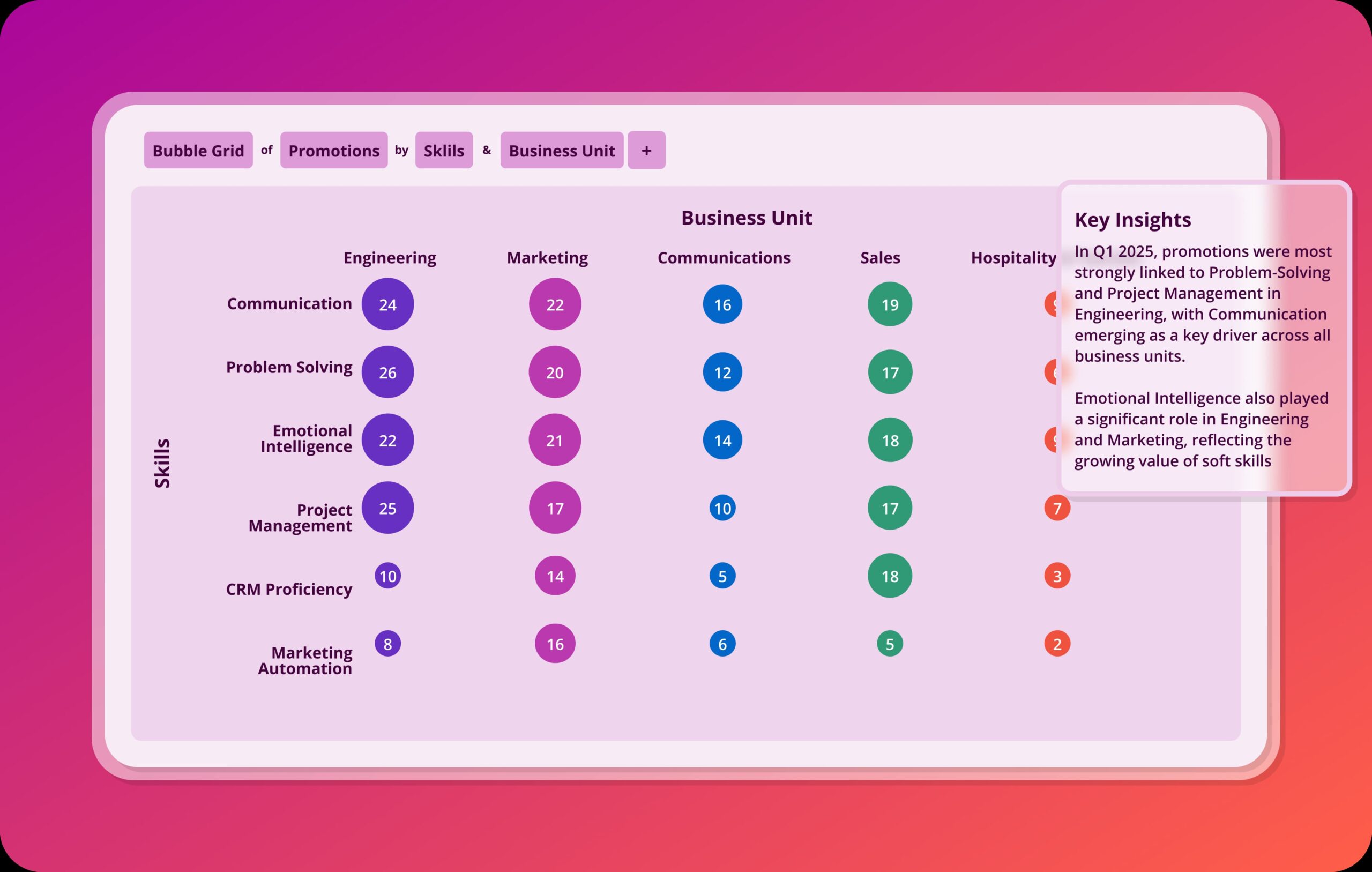 Fuel50 Insights is built for HR leaders who need to connect talent metrics to business outcomes and make data-driven decisions with confidence. Its intuitive dashboards and predictive analytics reveal what’s driving skills growth, mobility, and engagement, so you can take action fast.