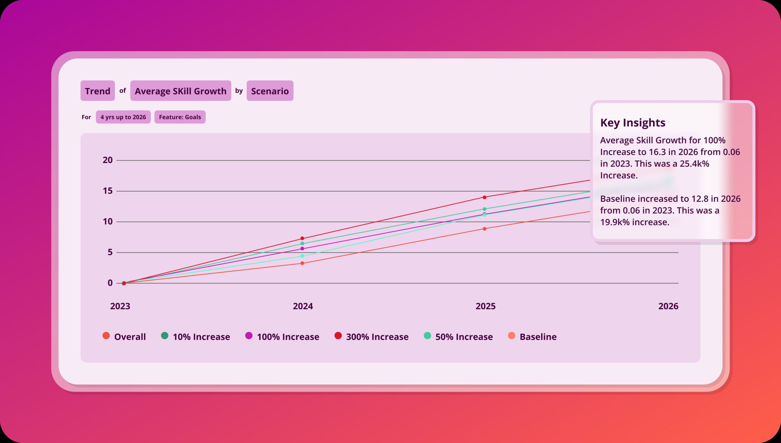 Visualise your baseline skills growth trajectory to see where capability is headed if nothing changes, so leaders share a single starting point for planning.