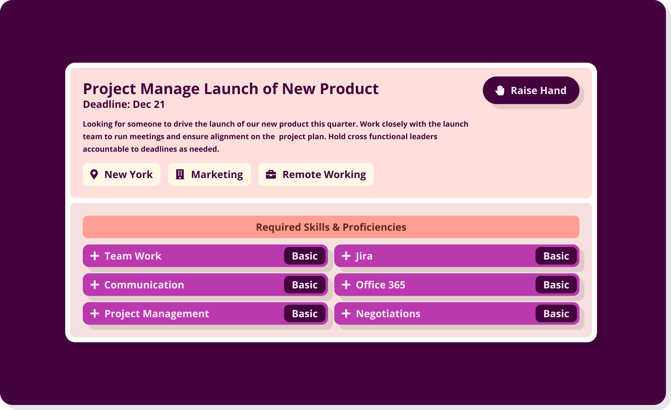As more teams post gigs, governance matters. Audience targeting ensures only eligible people see relevant projects. Co-ownership prevents bottlenecks. HR gets oversight without becoming the traffic cop.