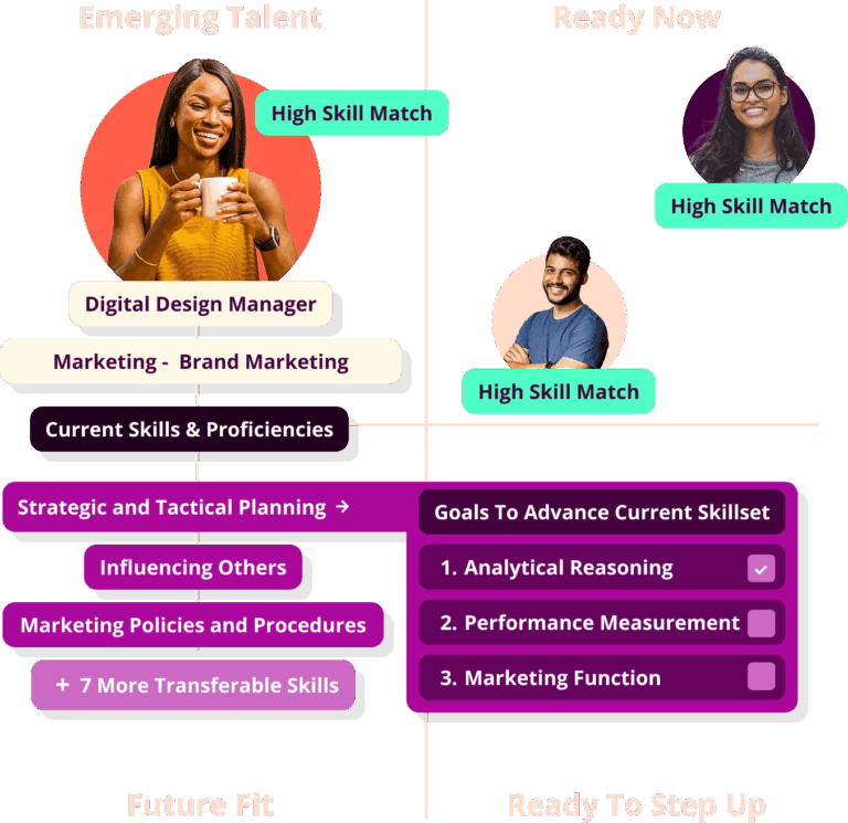 Fuel50’s Talent Matrix uses multidimensional skills data to show who’s genuinely ready for critical roles. It’s a clear, objective view of readiness—no politics, no guesswork.
